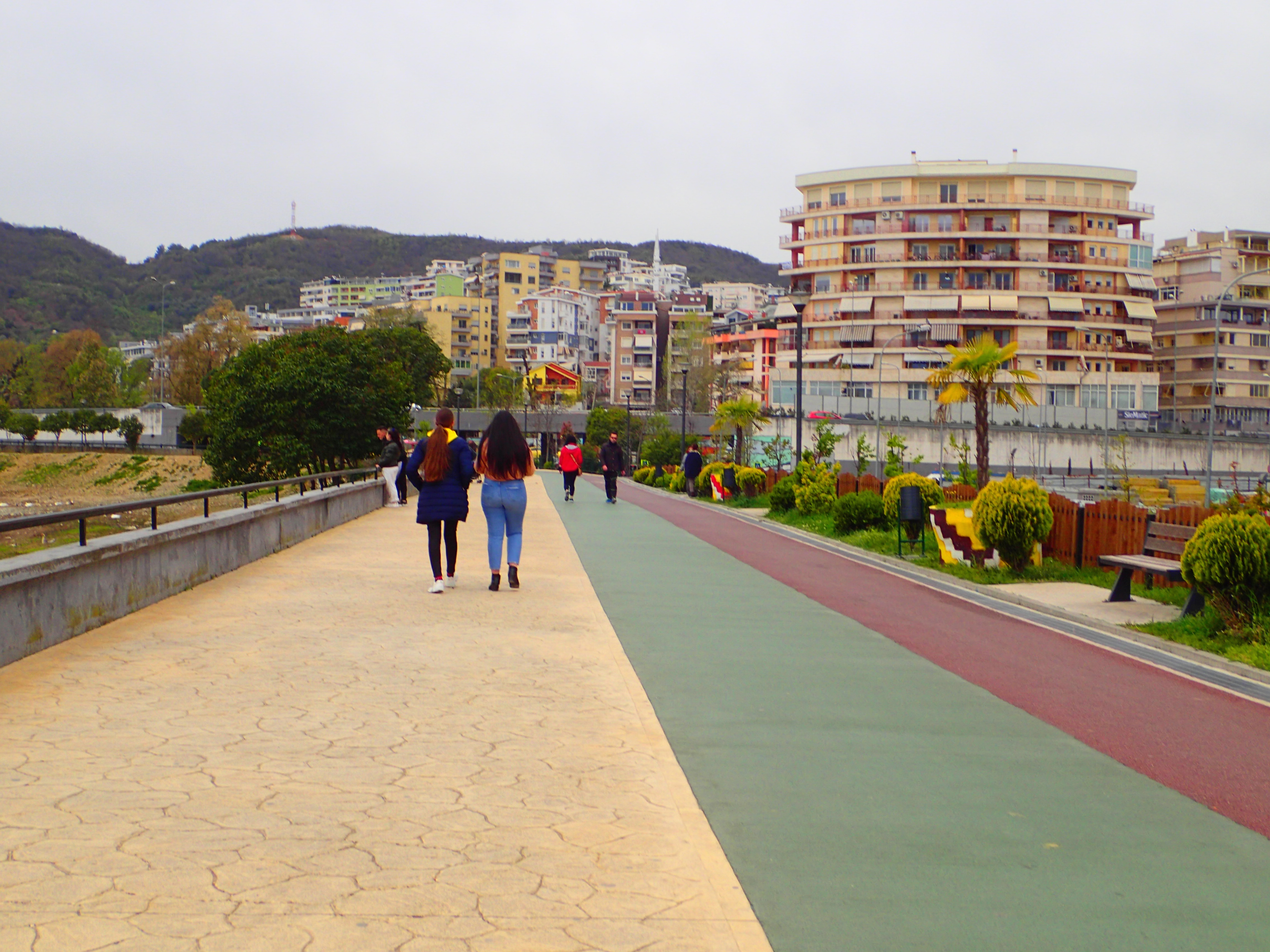 The first day, after we checked into the AirBnB, we struck out to walk the Grand Park of Tirana, which consists of a garden surrounding Lake Tirana. An esplanade lines the northern side of the lake, along with a few cafes, restaurants and a playground. The day before was when we went on the 17 mile uphill hike in Ohrid, and my legs were dead. So of course we opted for a walk that turned into a 9 mile jaunt. That was a good idea, right? Anyway, Lake Tirana is certainly not the most picturesque body of water I’ve ever laid eyes upon. The artificial lake is surrounded by a slightly drab cityscape and the park. While it was cloudy the day we ambled through it, I don’t think sunshine would have made it that much better with regards to the view… it’s just… bleak. A bike path and a walking path follow the waters edge and form a perimeter around the lake, which is precisely what we toured. We encountered several other pedestrians, one of which thoroughly confused me since she was “running” in a down vest, long sleeves and a hood – it wasn’t that cold out. You must be dying of heat exhaustion. So far, Tirana is just as uninspired as the rest of the country. Sheesh!